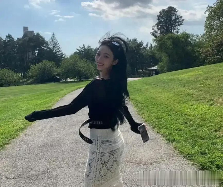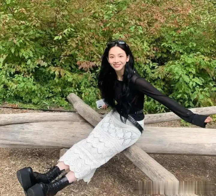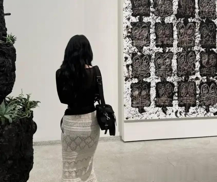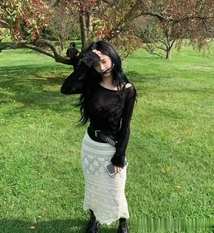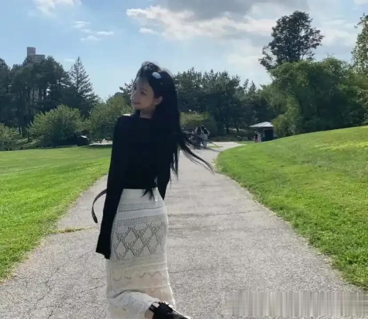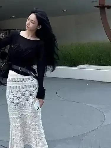 被柳智敏温柔女友风狠狠拿捏, 黑色长T搭配白色蕾丝半裙, 真优雅