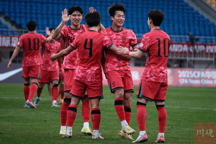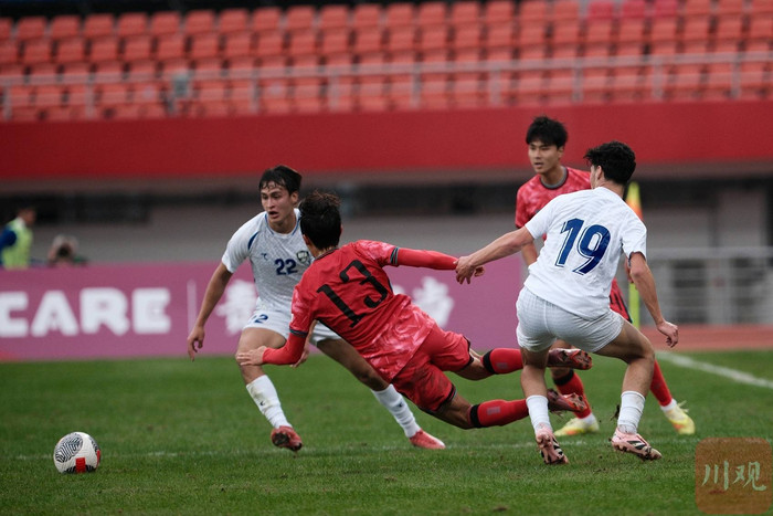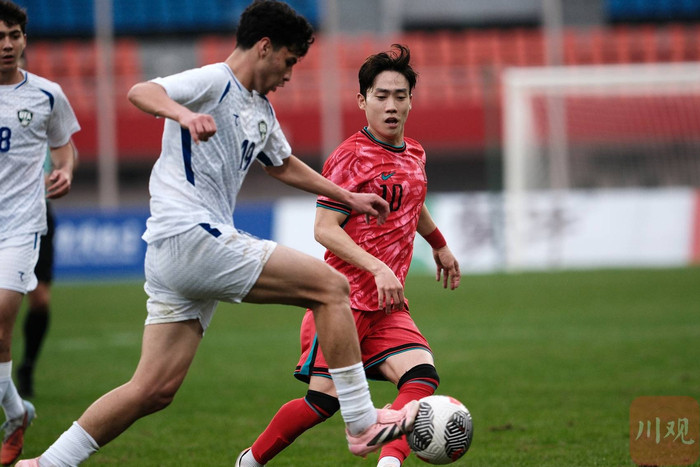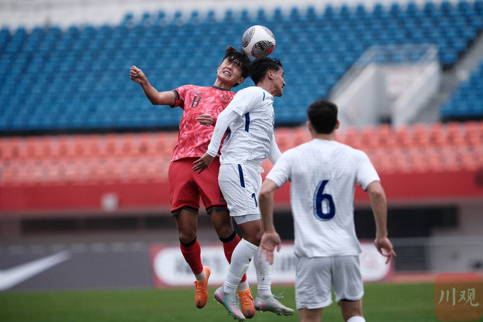 11月12日,2025“熊猫杯”国际足球锦标赛在成都正式开赛。首轮较量中,亚洲一流强队韩国U22迎战实力稳步提升的乌兹别克斯坦U22。