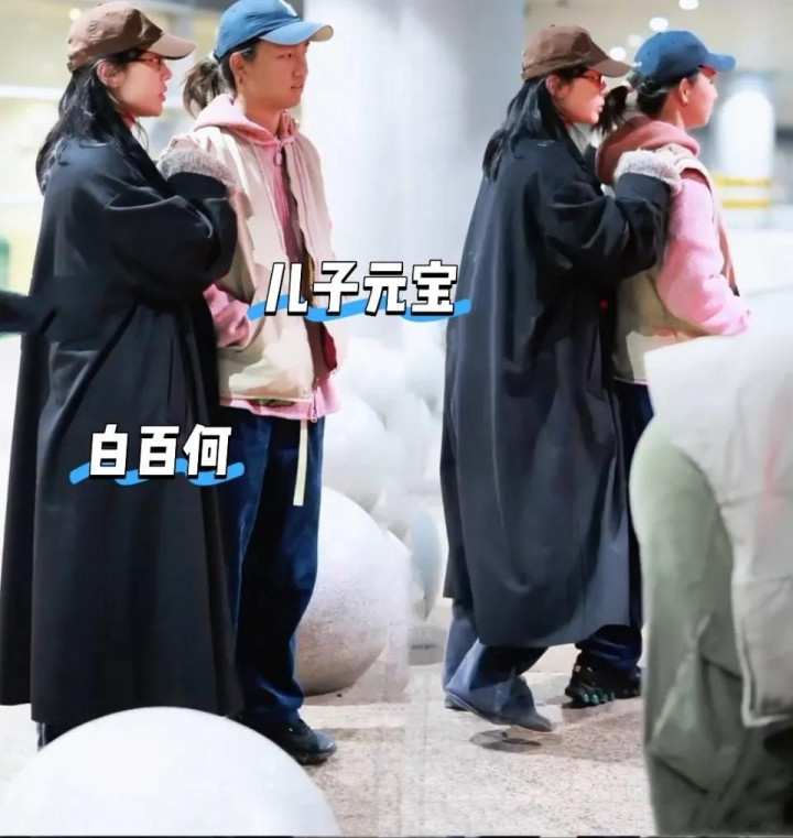 原来这次是带着俩儿子一起去的,大儿子元宝已经很久没有露脸了,平时在白百何的镜头里也能看到一些,不过现在的他已经完全蜕变,个子长得比妈妈还高了,目测已经有180了。