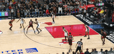 当队友在另一侧展开清空一侧的掩护发起时,琼斯适时从45°空切,武切维奇及时喂球,琼斯的上篮被干扰球算进。