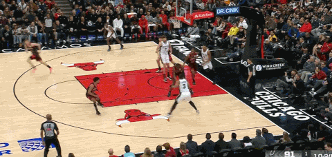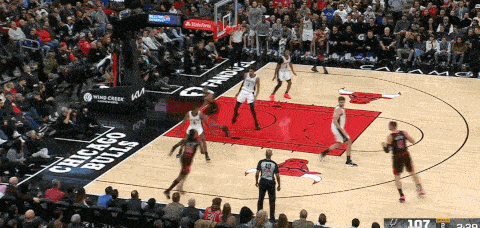 当然,作为组织者,琼斯快速上球意识的本能也和公牛队的风格高度贴合,这个回合先是快速出球给前场赫尔特,在队友进攻未果时快速拿到球并找到赫尔特的底角空位。