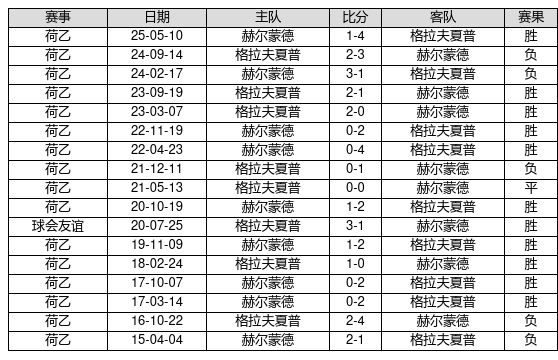 格拉夫夏普 VS 赫尔蒙德两队近10年的交战次数为17场,格拉夫夏普11胜1平5负,赢球概率为64.7%,平局概率为5.9%,输球概率为29.4%。