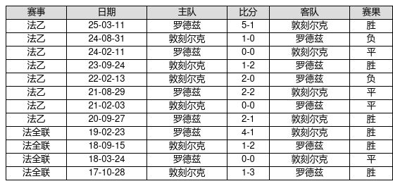 罗德兹 VS 敦刻尔克两队近10年的交战次数为12场,罗德兹6胜4平2负,赢球概率为50.0%,平局概率为33.3%,输球概率为16.7%。