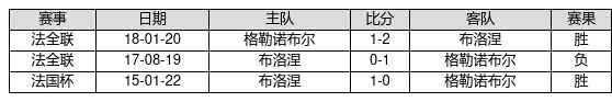 布洛涅 VS 格勒诺布尔两队近10年的交战次数为3场,布洛涅2胜0平1负,赢球概率为66.7%,平局概率为0.0%,输球概率为33.3%。