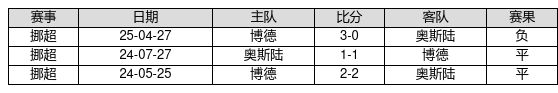 奥斯陆 VS 博德两队近10年的交战次数为3场,奥斯陆0胜2平1负,赢球概率为0.0%,平局概率为66.7%,输球概率为33.3%。