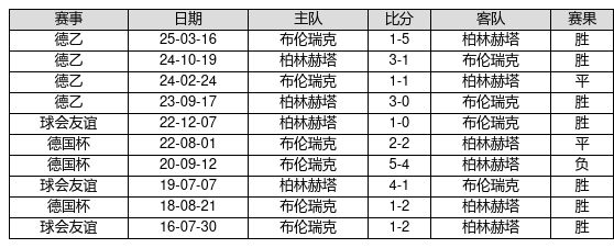 柏林赫塔 VS 布伦瑞克两队近10年的交战次数为10场,柏林赫塔7胜2平1负,赢球概率为70.0%,平局概率为20.0%,输球概率为10.0%。