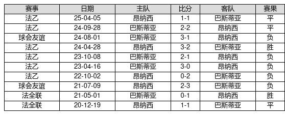 昂纳西 VS 巴斯蒂亚两队近10年的交战次数为10场,昂纳西2胜3平5负,赢球概率为20.0%,平局概率为30.0%,输球概率为50.0%。