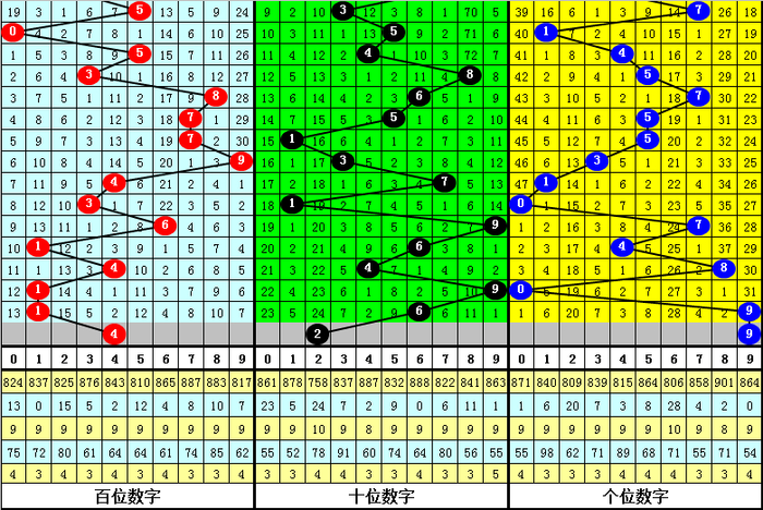 号码012路:上期开出两个0路号+一个1路号,0路号码全部轮空,1路号码全部轮空,最近100期奖号中,两个0路号+一个1路号出现16次,本期预计012路号码不会轮空,分别出现1枚。